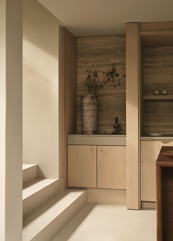 To achieve this sense of simplicity at Courtfield Road we worked with just two exquisite materials, Walnut and Travertine.